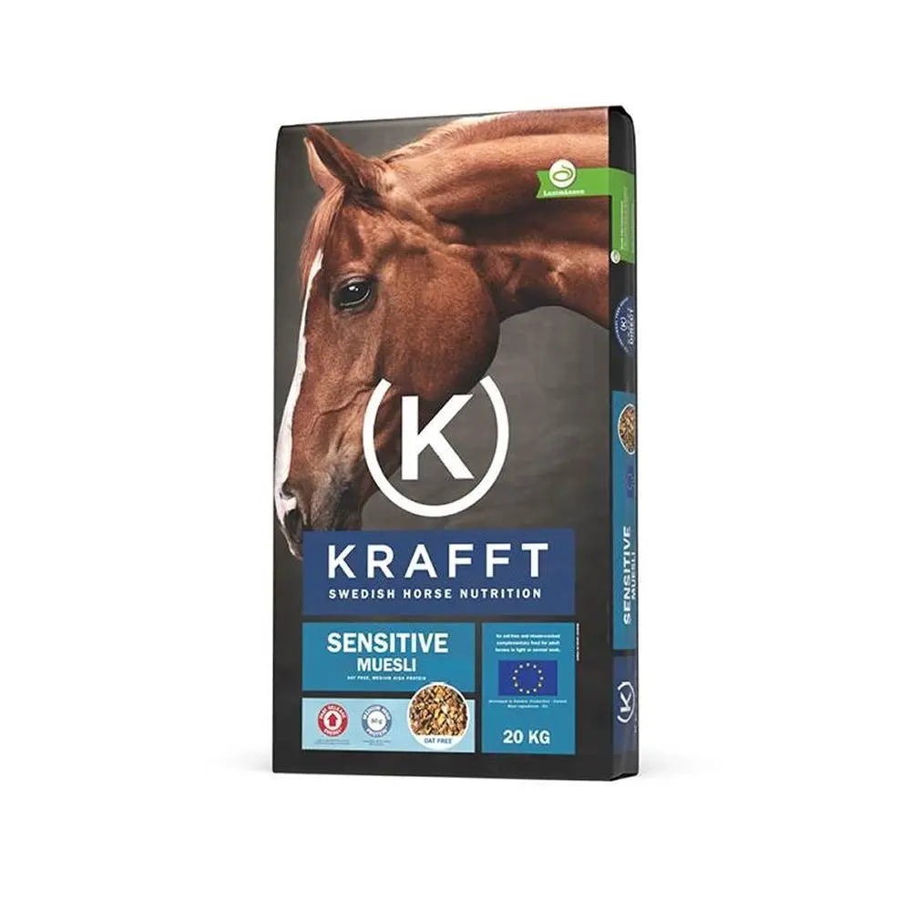 KRAFFT OAT FREE MUESLI su termički obrađeni na pari i ne sadrže zob. To je hrana posebno prilagođena za konje osjetljive na zob u laganom ili normalnom radu.