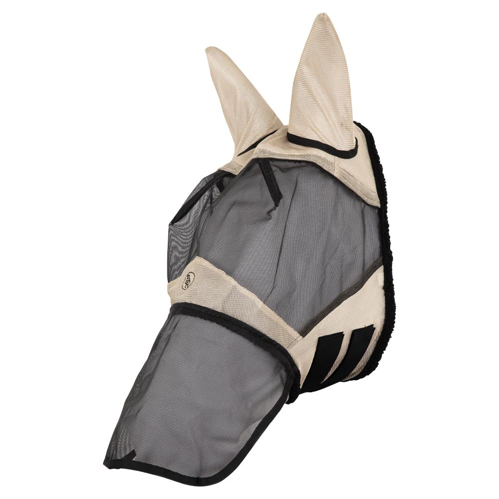 The BR Fly Mask Classic Gold insect mask with ears and nose piece provides excellent protection for the horse's head.